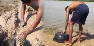 (មានវីដេអូ) Wow! ក្មេងប្រុសម្នាក់ជីកដីដាក់ចានដែកទុ...