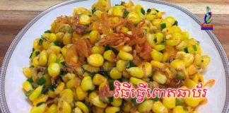 ពោតឆាប័រជាមួយបង្គាក្រៀម ឆ្ងាញ់អស់ទាស់!