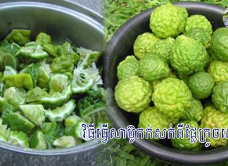 -ជាដំបូងយើងត្រូវយកផ្លែក្រូចសោចទៅលាងទឹកឲ្យស្អាតរួចចិតជាពីរហើយ...