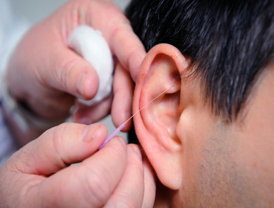 លាយទឹកខ្មេះបន្តិច និងអាល់កុលបន្តិចចូលគ្នា រួចបន្តក់ចូលត្រចៀក។ នៅពេលបន្តក់វា លោកអ្នក