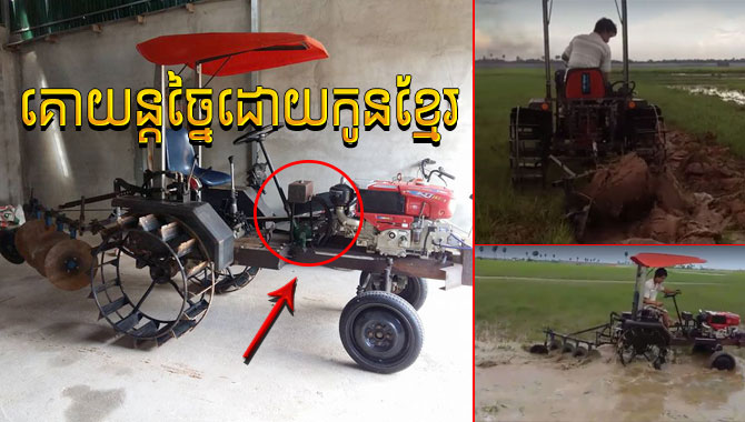 ថ្វីបើខ្មែរយើងមិនមានរោងចក្រផលិតម៉ាស៊ីនត្រាក់ទ័របានមែនតែគេឃើញមានជារឿយៗដែលគេច្នែគោយន្តកន្ត្រៃបានទៅជាគោយន្តឬត្រាក់ទ័រដែលមានភាពងាយស្រួលក្នុងការប្រើរប្រាស់ក្នុងការធ្វើស្រែចំការ។យ៉ាងណាមិញគេឃើញបុរសម្នាក់ដែលយកគោយន្តកន្ត្រៃមកច្នៃជាកូនត្រាក់ទ័រដែលអាចបើកបានដូចឡាន។ បើតាមវីដេអូ គេឃើញគោយន្តច្នៃនេះអាចភ្ជួរបានយ៉ាងងាយស្រួល។ បើតាមសម្តីរបស់បុរសនេះ គឺគាត់មានបំណងបង្កើតត្រាក់ទ័រខ្នាតតូចនេះលក់ក្នុងទីផ្សារ ដូចនេះសូមជួយគាំទ្រស្នាដៃគាត់ផង ។