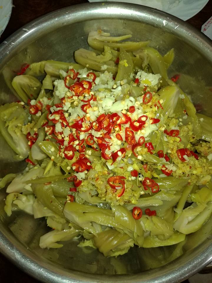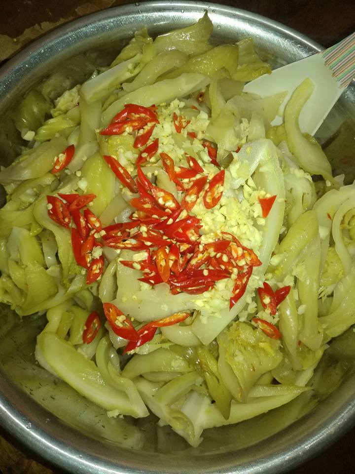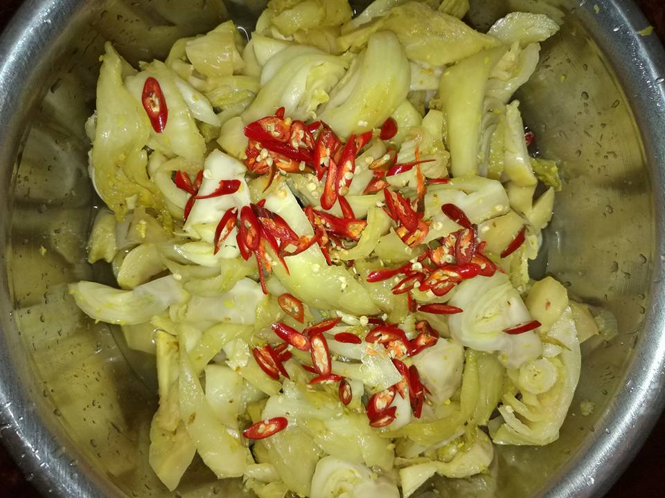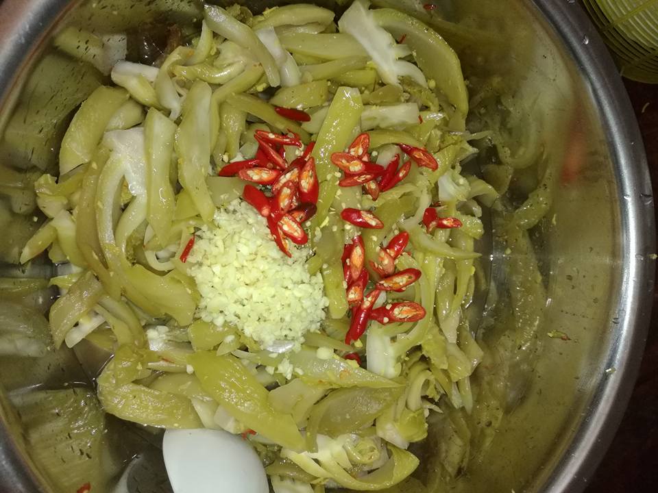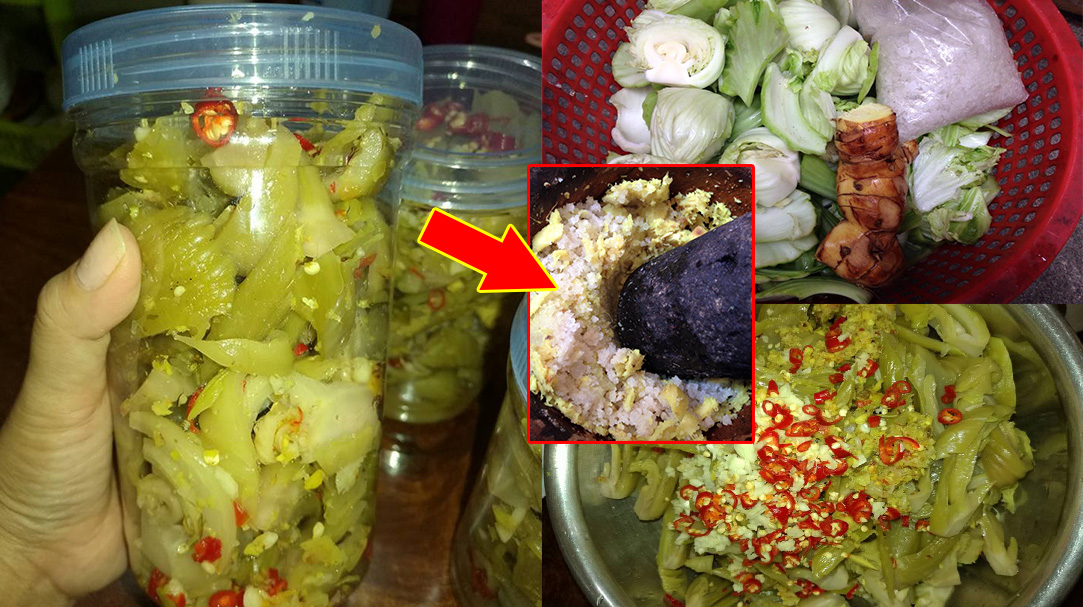 – យកស្ពៃច្របាច់ ជា១អំបិលរំដេងម្តង១ម្តង១រួចផ្អាប់ទុក ៣-៥ម៉ោង, ស្រង់ស្ពៃ (ទឹកអំបិលចេញពីស្ពៃមិនយកទេ)