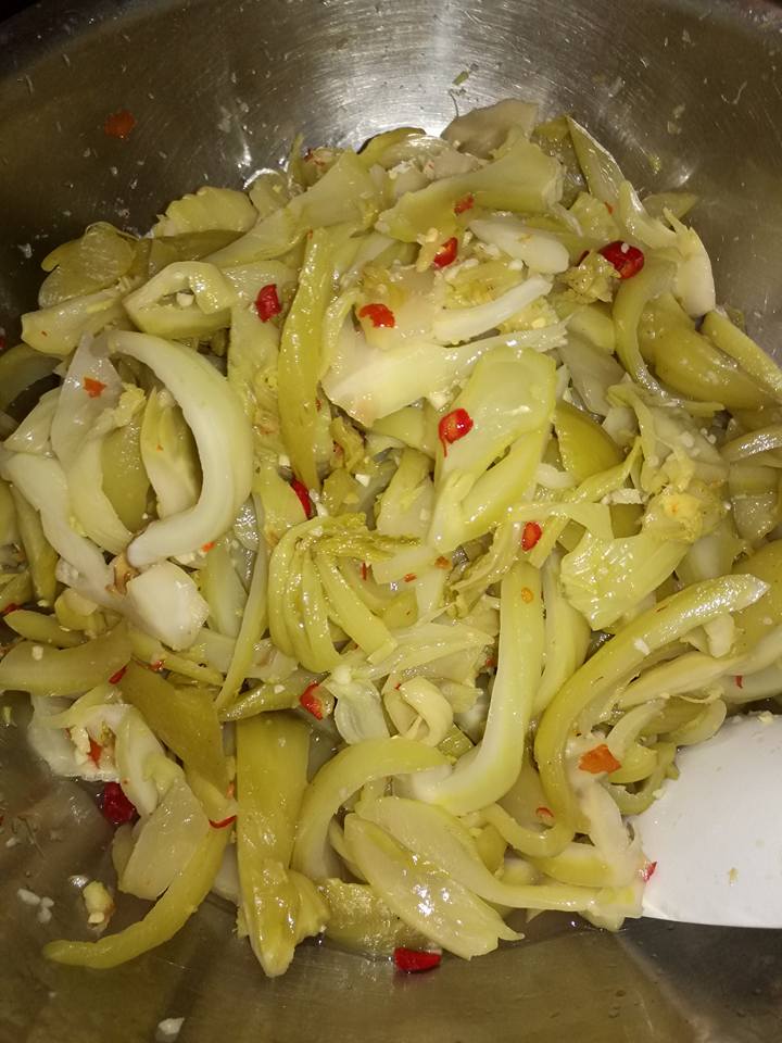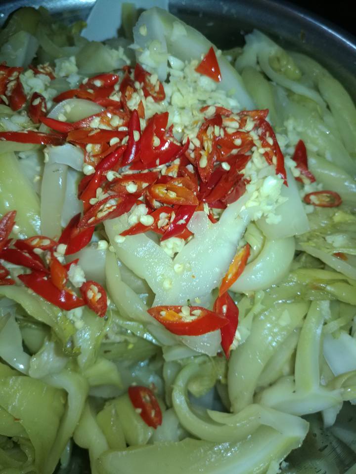-យកស្ពៃមកស្រុស ២-៣នាទី ហើយស្រង់យកលាងទឹកត្រជាក់ រួចស្រង់ដាក់កញ្រែ្ចងទុកមួយឡែក។