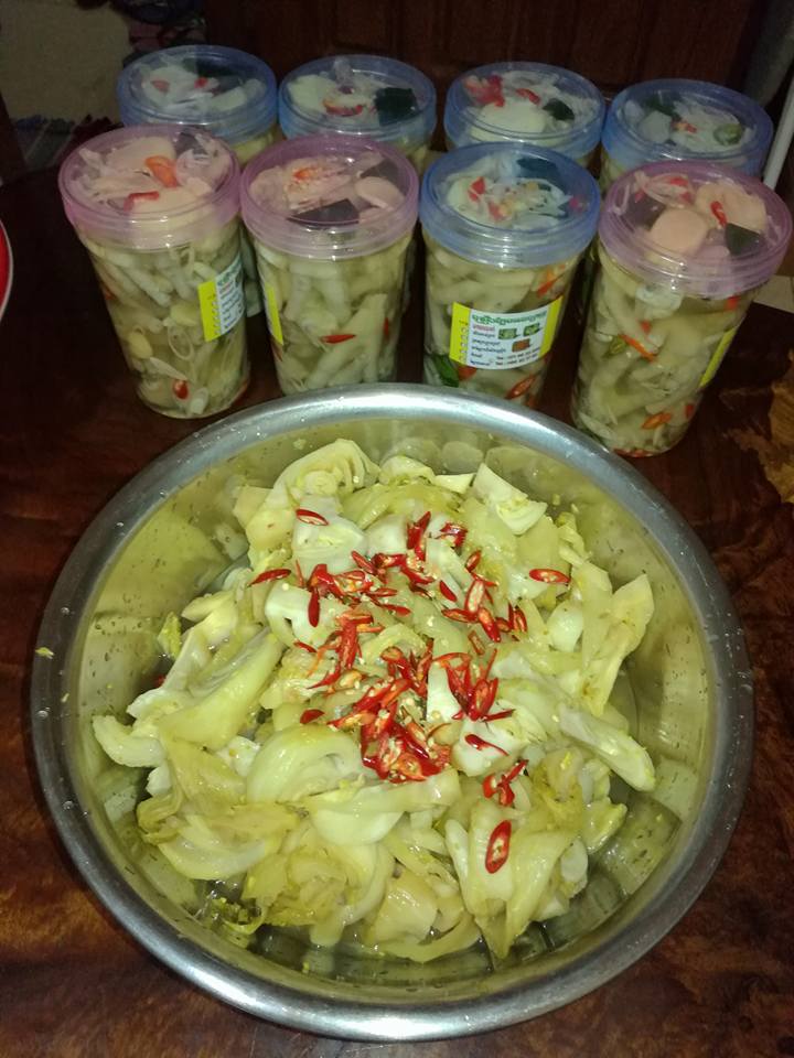 ** វិធី៍ធ្វើមួយបែបទៀត៖ ស្ពៃមិនបាច់ស្រុសក៏បាន គ្រាន់តែយកវាទៅហាលថ្ងៃ អោយស្រពាប់ (លាងទឹក១ឬ២សារទៀត (ខែនេះធុលីហុយ) ចាំយកវាមកក្រឡុក អំបិលផ្អាប់ទុក ២-៣ម៉ោង ពូតទឹកចេញ ហើយចាំ យកមកប្រលាក់ជា១ អំបិលរំដេងភ្លក់មើលកុំអោយប្រៃពេក ហើយ ចាក់ទឹកស្ករ គ្របទុកជាការស្រេច