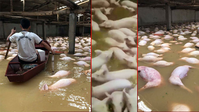 វៀតណាម៖ ពិតជាគួរអោយសោកស្តាយ ដោយម្ចាស់កសិដ្ឋានម្នាក់ខាតលុយអស់រាប់សែនដុល្លាបន្ទាប់ជ្រូករបស់គាត់បានងាប់អស់មួយកសិដ្ឋាន អណ្តែតព្រោងព្រាតពេញទ្រុង។ ហេតុការណ៍នេះបានកើឡើងនៅប្រទេសវៀតណាម ដោយសារទឹកជំនន់ ធ្វើអោយជ្រូករបស់គាត់លង់ទឹកងាប់អស់គ្មានសល់រយះពេលតែមួយយប់ប៉ុណ្ណោះ។