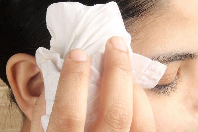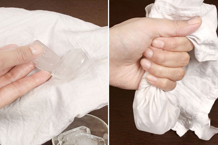 – រុំទឹកកកដែលមានដុំបួនជ្រុងតូចៗ ឬកំទេចទឹកកកហើយដាក់ក្នុងកន្សែងស្តើង។ ដាក់វានៅលើថ្ងាសរបស់អ្នកឲ្យបាន ២-៣នាទី។ កុំប្រើទឹកកកដោយផ្ទាល់នៅលើស្បែករបស់អ្នក ព្រោះវាអាចបំផ្លាញស្បែករបស់អ្នកបាន។