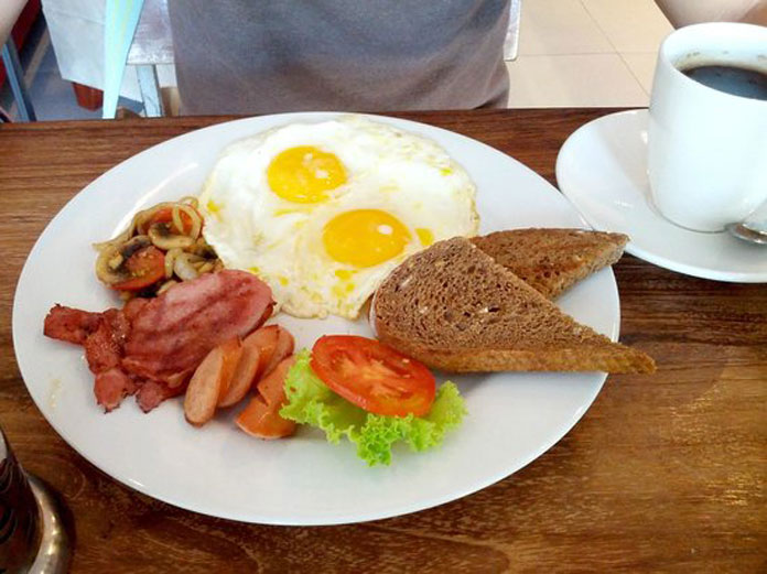 ដើម្បីទប់ស្កាត់ការងងុយគេងនៅពេលថ្ងៃមិនត្រូវរំលងអាហារពេលព្រឹកឡើយ។ ការញ៉ាំអាហារពេលព្រឹកដែលមានសុខភាពល្អក៏នឹងជួយឲ្យអ្នកសកម្មនៅពេលព្រឹក និងភាពផលិតកាន់តែច្រើនក្នុងសកម្មភាពប្រចាំថ្ងៃរបស់អ្នក។លើសពីនេះទៀតការញ៉ាំអាហារពេលព្រឹកមានន័យថាជាតិស្ករក្នុងឈាមរបស់អ្នកនឹងមានកម្រិតទាបនៅពេលព្រឹក។អាហារពេលព្រឹកល្អរួមមាន អាហារដែលមានជាតិខ្លាញ់តិច និងមានជាតិប្រូតេអ៊ីនរួមមាន ទឹកដោះគោ ទឹកដោះគោយ៉ាអួ ស៊ុត នំប៉័ងដែលធ្វើពីគ្រាប់ធញ្ញាជាតិ និងផ្លែឈើសម្បូរជាតិសរសៃ នៅក្នុងបញ្ជីអាហារពេលព្រឹករបស់អ្នក។