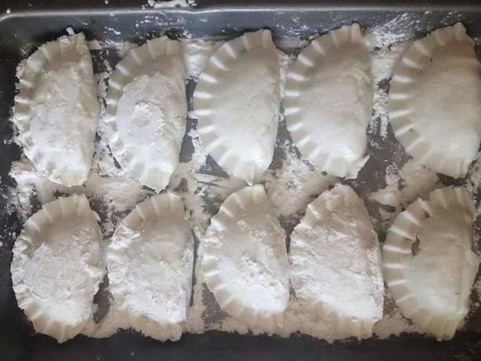 ៤ – យកម្សៅដែលកិនហើយ ដាក់ខ្ចប់ស្នូលនំគូឆាយ ចង់យករាងមូល ជ្រុង ឬក៏ធ្វើរាងអ្វីៗផ្សេងបានតាមចំណូលចិត្តដែលអ្នកចង់បាន។
