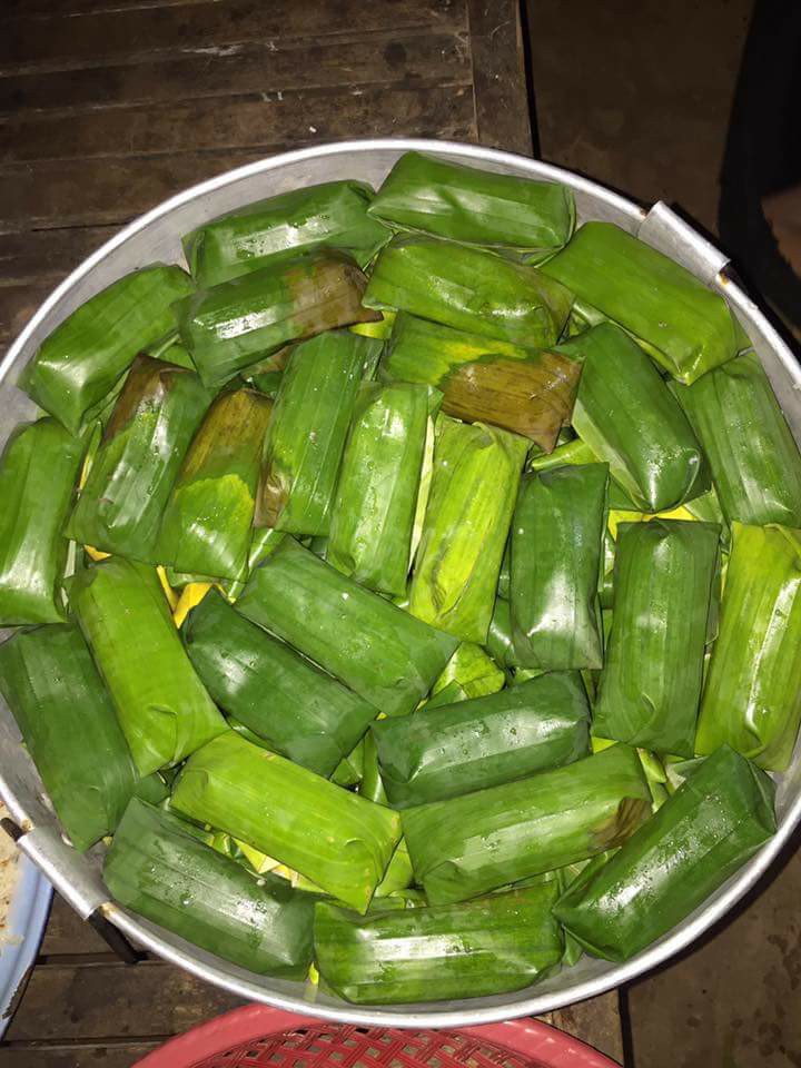 ៦. ពេលដែលវេចរួចយកវាទៅដាក់ចំហុយប្រហែលជា ៣០-៤០នាទីឆ្អិនជាការស្រេច ៕