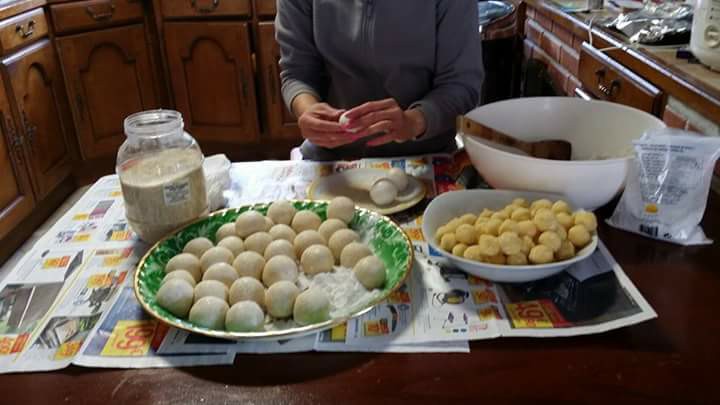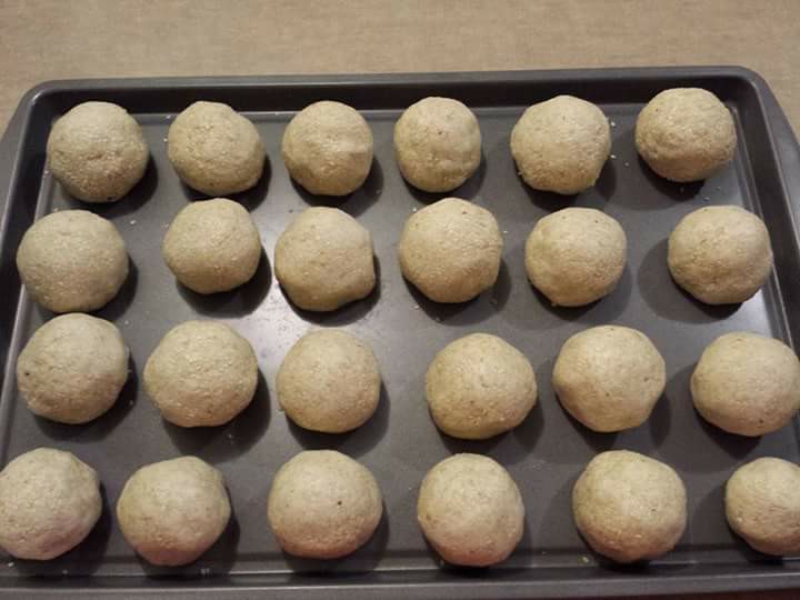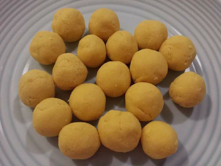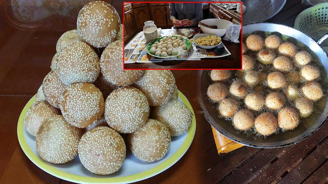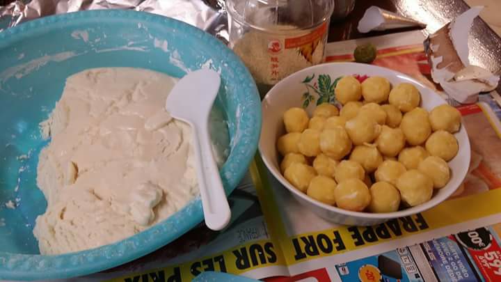 ៣. យកម្សៅម្តង ១ដុំតូចល្មមតាមដែលចង់បានធ្វើឲ្យសំប៉ែត បន្ទាប់មកយកស្នូលនំលុញជាដុំមូលៗដាក់ពីលើម្សៅរួចហើយធ្វើវាឲ្យជិតលុញឲ្យមូល។