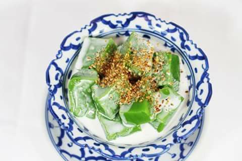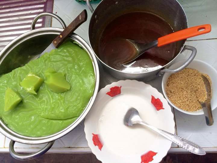ខ្ទិះដូង ៤៨០មីលីលីត្រ, ស្ករស ១ស្លាបព្រាបាយ, អំបិល កន្លះស្លាបព្រាកាហ្វេ, ម្សៅឆា ១ស្លាបព្រាបាយ ដាក់ចូលក្នុងឆ្នាំងទាំងអស់កូរវាឲ្យសព្វយកវាដាក់ដាំឲ្យពុះជាការស្រេច៕