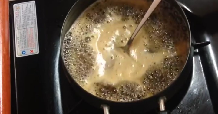 ២. បន្ទាប់មកយកមកដាក់លើភ្លើងកូរ(ត្រូវកូររហូត) ២ទៅ ៣នាទីដំបូងដាក់ភ្លើងខ្លាំង បន្ទាប់មកទៀតដាក់ភ្លើងក្តៅល្មមបានហើយ កូរប្រហែលជា ២០-២៥នាទី។