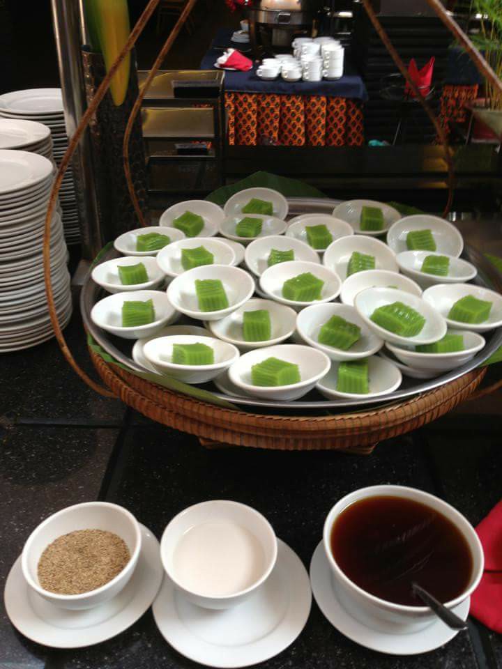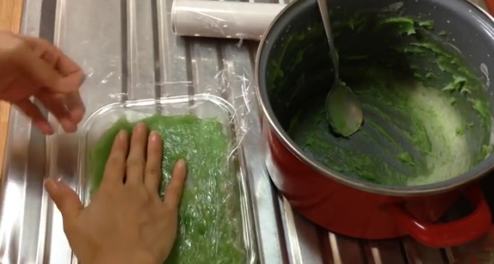 ៣. ២៥នាទីនំបានឆ្អិនលើកវាយកមកចាក់ដាក់ក្នុងថាសវាចឲ្យស្មើ រួចហើយទុកឲ្យត្រជាក់។
