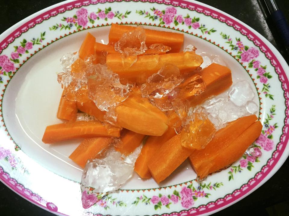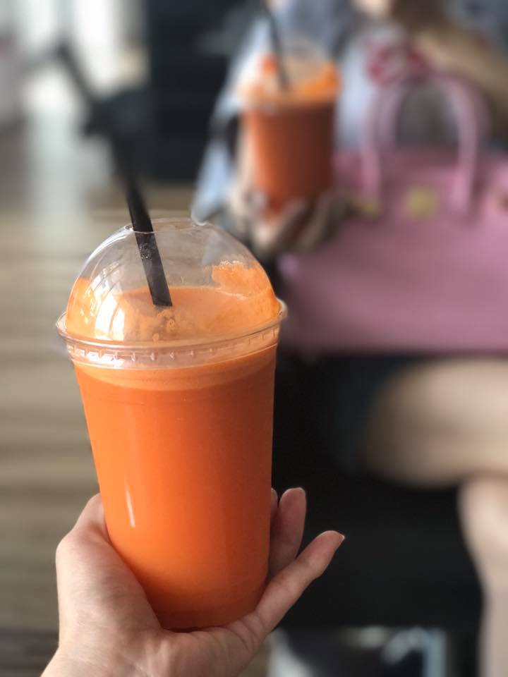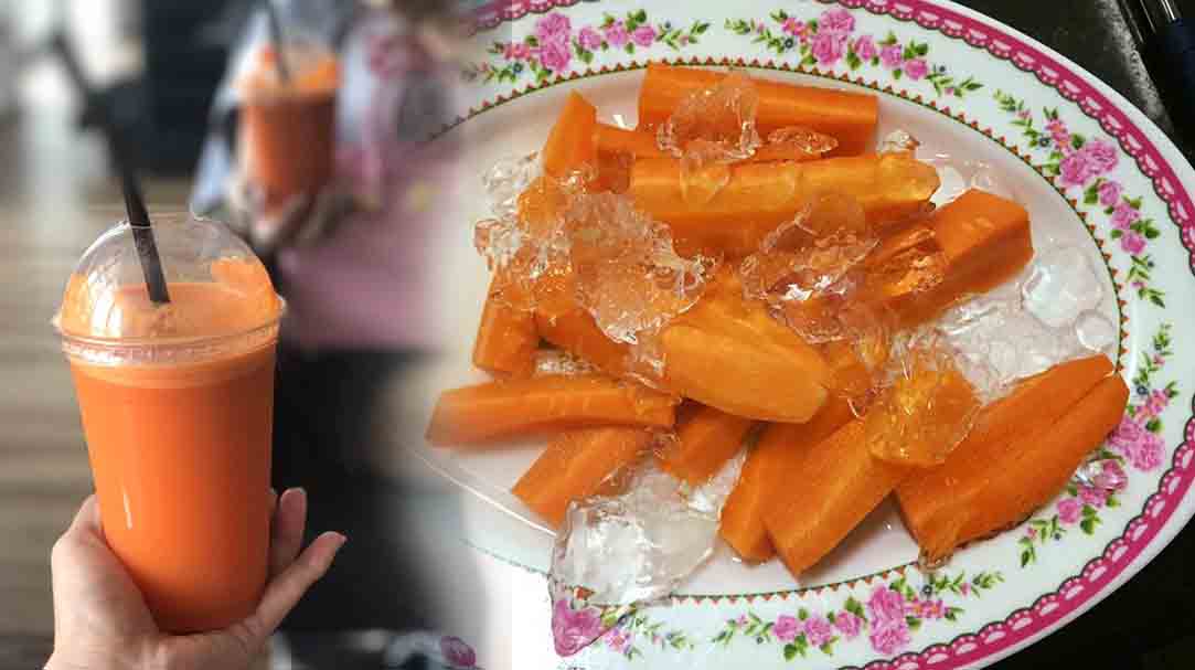 កិនគ្រឿងផ្សំទាំងពីរបញ្ចូលគ្នាក្នុងម៉ាស៊ីនទឹកក្រឡុក រួចពិសា។ ជាតិទឹក ៩០ ភាគរយមានក្នុងត្រសក់ជាមួយនឹងវីតាមីនចម្រុះក្នុងការ៉ុត ជួយបណ្ដេញជាតិពុលក្នុងរាងកាយ ជាពិសេសតម្រងនោម៕