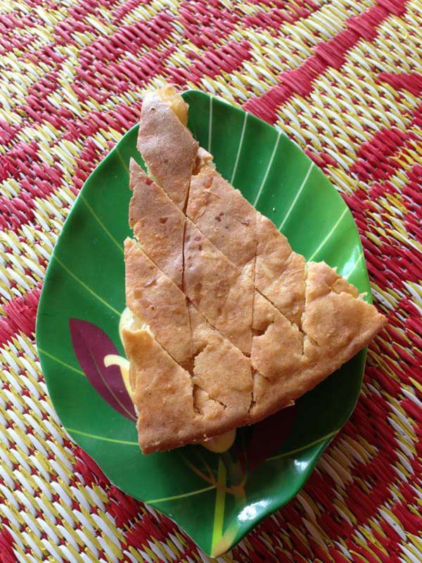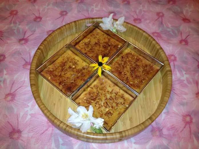 ក្រោយពីនំឆ្អិនល្អ អ្នកយកចេញត្រូវទុកវាពី ១៥ ទៅ២០នាទីសិនអោយត្រជាក់ ដើម្បីឲ្យងាយស្រួលក្នុងការកាត់ កាត់ហើយរៀបដាក់ចានជាការស្រេច ៕