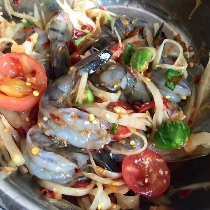 1. បុកខ្ទឹមស និងម្ទេសអោយរៀងម៉ត់បន្តិច ដាក់ក្តាមប្រៃ ត្រប់ស្រួយ ប៉េងប៉ោះបុកបន្តិចទៀត ចាំដាក់ល្ហុង ការ៉ុត ក្រូចឆ្មា ដាក់ស្ករត្នោត កាពិ ប៊ីចេញបន្តិច ទឹកត្រីបន្តិច ក៏បាននិងបង្គាស្រស់ចូល រួចបុកញុំៗ2-3 ក្រោយមកដាក់ជីរណាគ្រាន់តែច្របល់វាបានហើយ រួចភ្លក់មើលជាការស្រេច😋