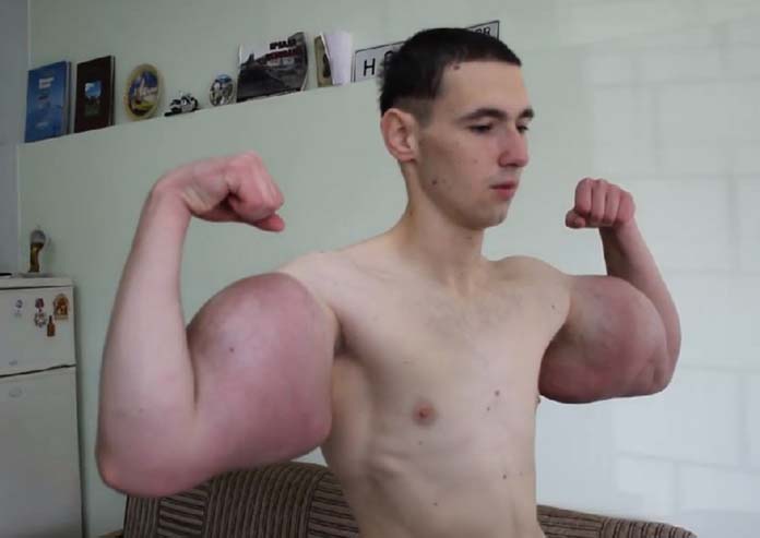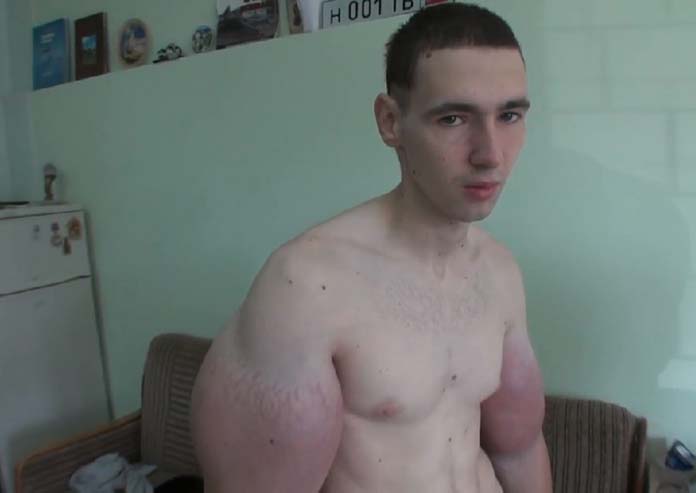 បុរសក្មេងវ័យ ២១ ឆ្នាំរូបនេះបានចាក់ថ្នាំ Synthol (ម៉ូលេគុលពង្រីកសាច់ដុំ) ដែលជាសារធាតុមួយបង្កើតចេញពីប្រេងឥន្ធនៈ ថ្នាំបំបាត់ការឈឺចាប់ និងស្រា ចូលទៅក្នុងសាច់ដុំដៃរបស់គាត់ដើម្បីបំប៉ោងមាឌរបស់សាច់ដុំ។ នេះបើយោងតាមវេបសាយ Ruptly ។