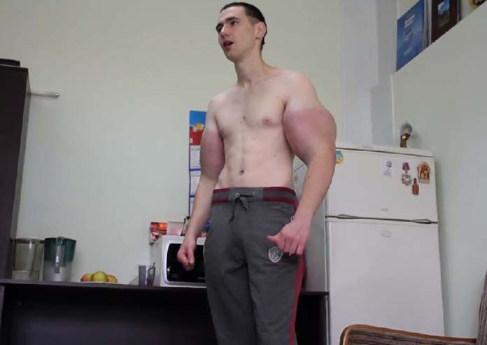 សាច់ដុំដែលមើលទៅសិចស៊ីល្អឥតខ្ចោះ ជាធម្មតាដើម្បីទទួលបានលទ្ធផលគឺត្រូវធ្វើការហ្វឹកហាត់ជាច្រើនខែ និងទទួលទានរបបអាហារត្រឹមត្រូវ ប៉ុន្តែសម្រាប់បុរសវ័យក្មេងក្នុងប្រទេសរុស្ស៊ីម្នាក់នេះគឺមានដៃដូចជាតួអង្គមនុស្សកម្លាំងយក្ស Hulk ត្រឹមតែរយៈពេលមួយខែប៉ុណ្ណោះ។