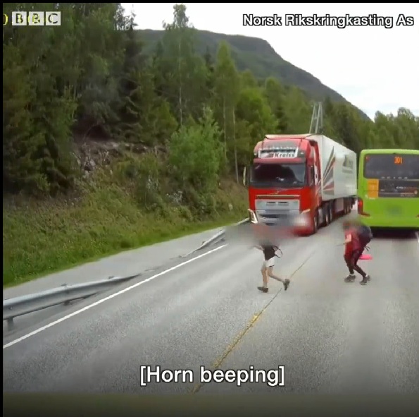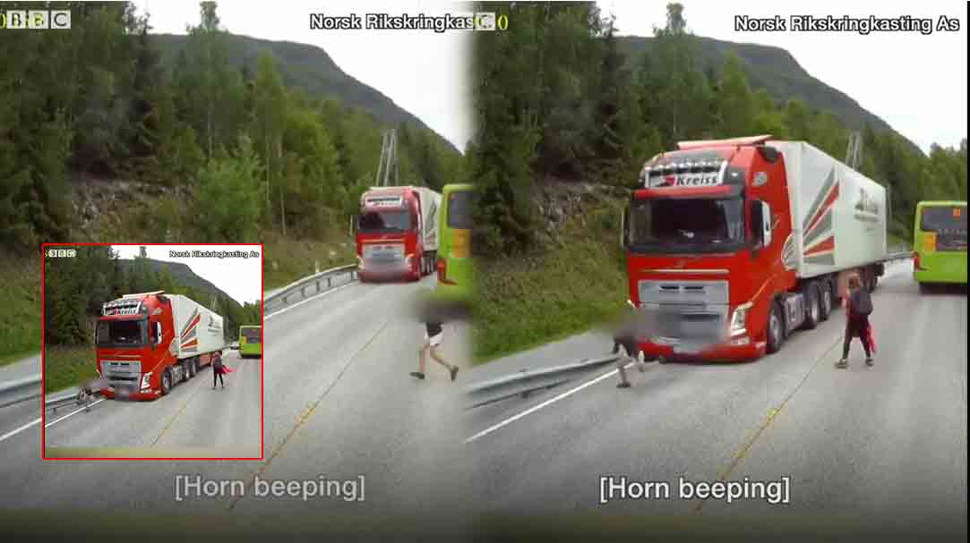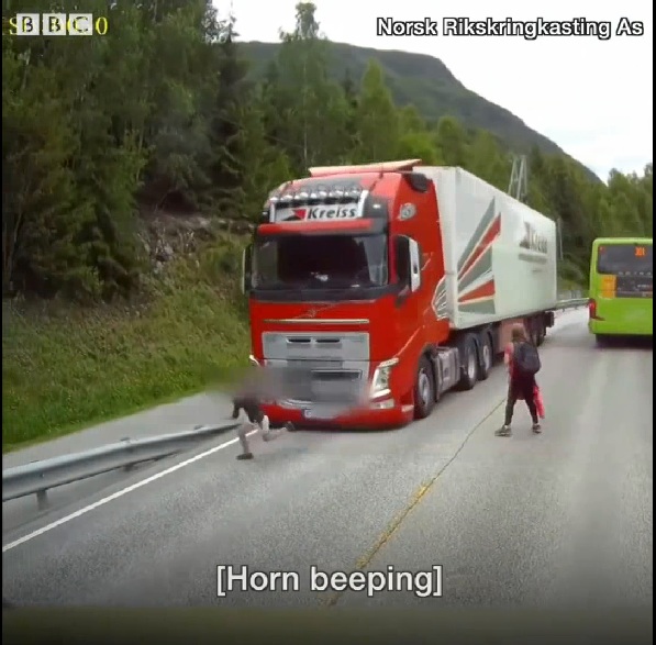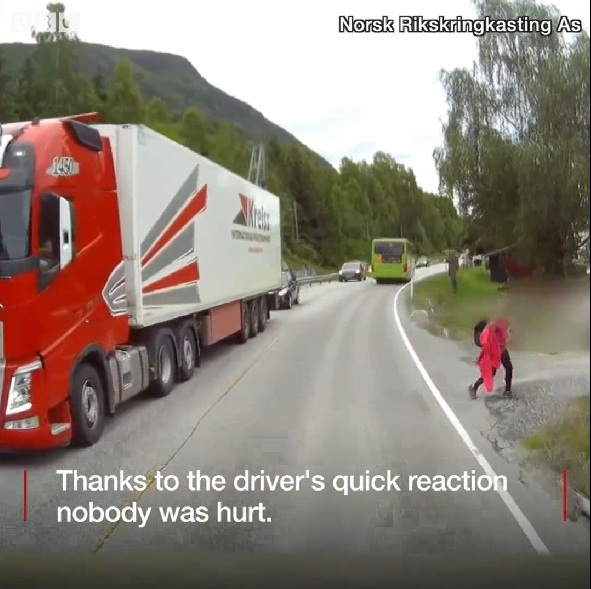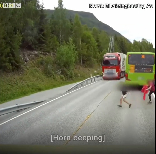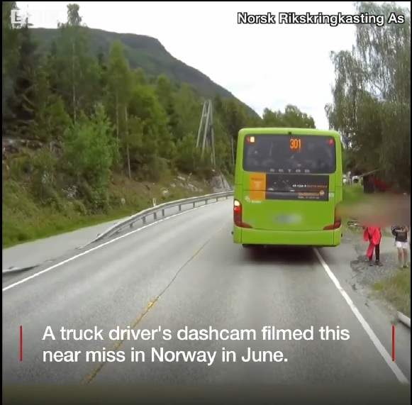 ហេតុការណ៍ដែលស្ទើរតែនឹងឆក់យកជីវិតក្មេងស្រីម្នាក់នេះបានកើតឡើង ខណៈដែលក្មេងសិស្សសាលាបានចេញពីរថយន្តក្រុងសិស្សសាលាមួយគ្រឿងក្នុងប្រទេសន័រវែស៕