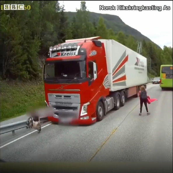 នេះគឺជាទិដ្ឋភាពដ៏គួរឱ្យភ្ញាក់ផ្អើលមួយ ដែលក្មេងស្រីសិស្សសាលាមួយរូបពិតជាមានសំណាងបំផុតដែលអាចគេចផុតពីការប៉ះទង្គិចរបស់រថយន្តទំនិញដ៏ធំមួយគ្រឿង។