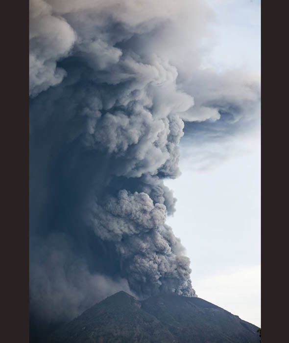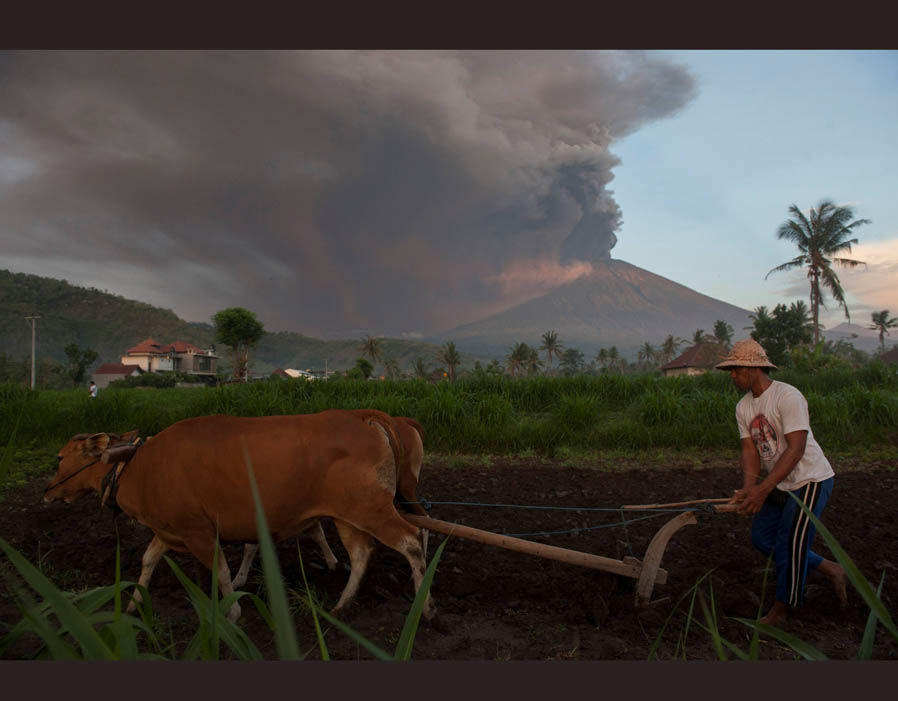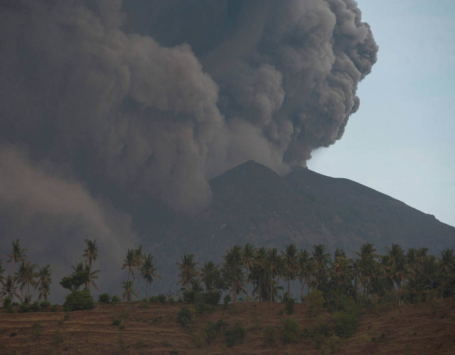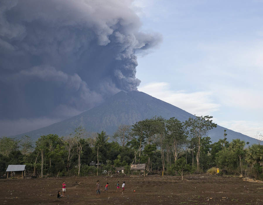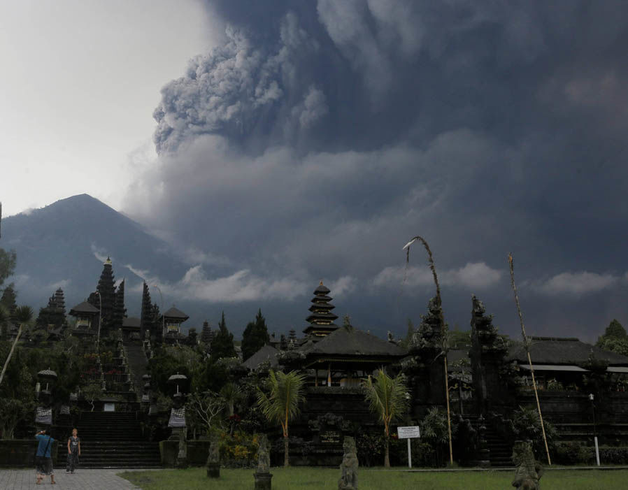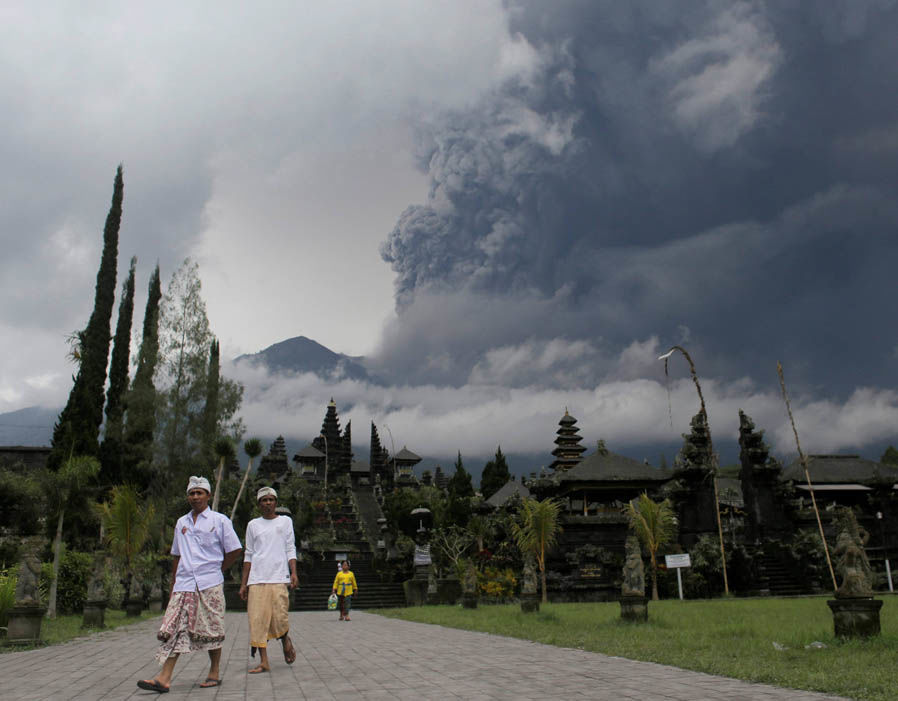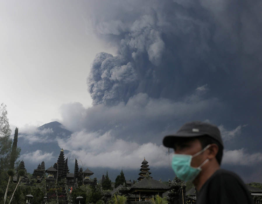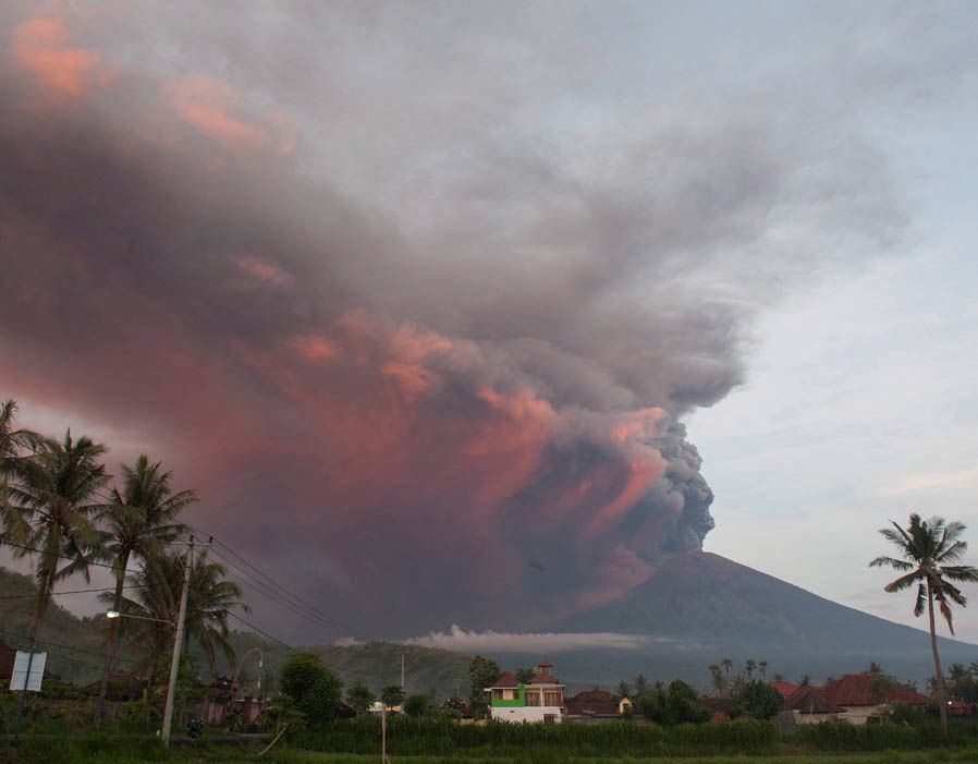 ផេះគ្របដណ្ដប់ពេញផ្លូវ រថយន្ត និងអគារក្បែរភ្នំភ្លើងក្នុងភាគខាងឦសាននៃកោះ ខណៈដែលកម្អែភ្នំភ្លើងហូរបង្ហាញខ្លួន។ Gede Suantika ទីភ្នាក់ងារកាត់បន្ថយគ្រោះមហន្តរាយភូមិសាស្ត្រនិយាយថា “ភ្នំភ្លើងសកម្ម Agung បានឈានដល់ដំណាក់កាលផ្ទុះថ្មភ្នំ ហើយវាកំពុងបញ្ចេញផេះ ប៉ុន្ដែយើងត្រូវតាមដាននិងប្រុងប្រយ័ត្នលទ្ធភាពនៃការផ្ទុះដ៏ធំរបស់វា”។