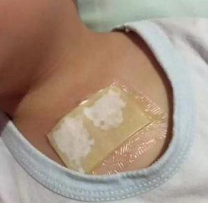 បិតលើខ្នងឫទ្រូងហើយប៉ាតជាមួយស្កុត/apply on the back or chest and secure with tape