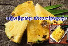បកសំបកផ្លែបឺរហើយ យកសាច់ដាក់ក្នុងម៉ាស៊ីនក្រឡុក