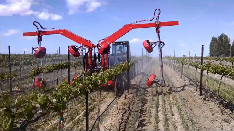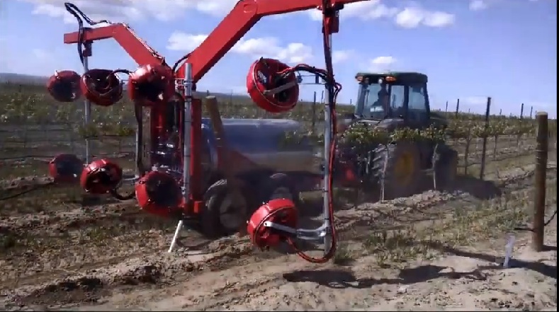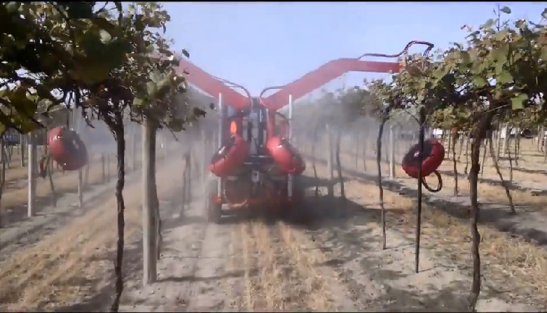 (Video)ប្លែកទៀតហើយ!នេះជាឧបករណ៍ដែលគេប្រើសំរាប់បាញ់ថ្នាំទៅលើដំណាំទំពាំងបាយជូរ 20/12/2017 586 Share on Facebook Tweet on Twitter tweet **ប្រភេទគ្រឿងចក្រ** : – ឧបករណ៍ស្វ័យប្រវត្តសណ្តោងជាមួយត្រាក់ទ័រ **ប្រើសំរាប់** : – បាញ់ថ្នាំដំណាំកសិកម្មផ្សេងៗ **តំលៃ** : – ប្រហាក់ប្រហែល 50,000$ (តំលៃនៅបរទេស) **ផលិតនៅ: – ប្រទេស ហូរឡង់