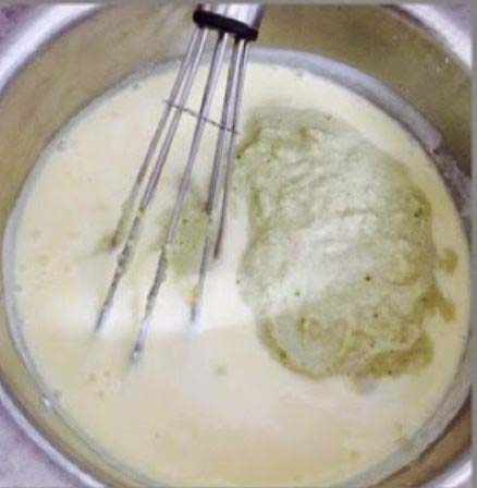 លាយខ្ទិះដូងជាមួយស្លឹកកន្រុបកិន នឹងលាយឱ្យបានល្អ/add the milk to curry paste and mix well