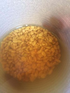 ដាក់គ្រាប់fenugreek ក្នុងទឹកមួយពេងហើយត្រាំរយះពេលពីរម៉ោង/put the Fenugreek to a cup of water and soak for 2 hours