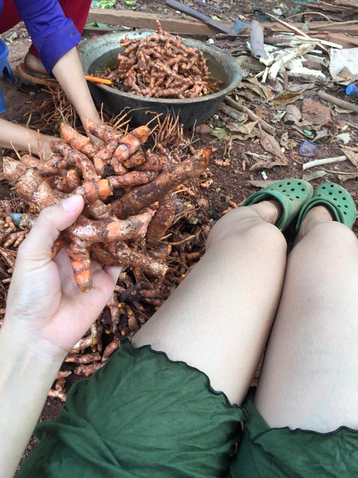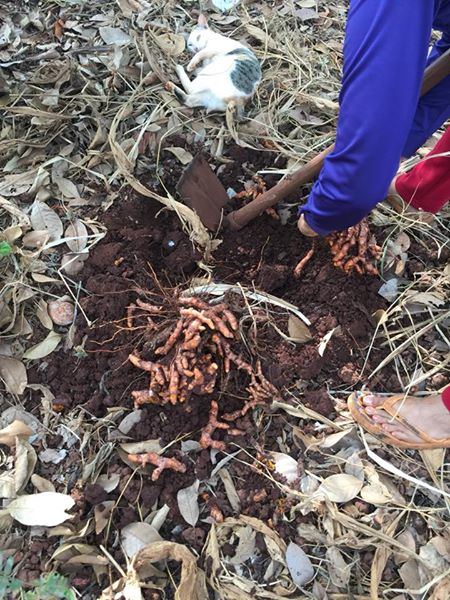 -គេយកមើមរបស់វាកាត់ឫសតូចៗចេញ ហើយហាន់ជាចំណិតៗ ដែលមានកំរាស់ស្ដើងៗរួចយកទៅហាលថ្ងៃសំងួត ឬក៏យកមើមទៅដាក់ស្រុសទឹកក្ដៅរហូតឆ្អិន (មើមទន់) រួចហើយដាក់ហាលថ្ងៃសំងួតទុកសំរាប់ប្រើប្រាស់ដូចជា៖
