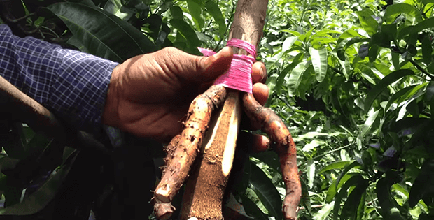 ខាងក្រោមនេះជាវិធីបំបៅមែកស្វាយ ដោយយកឫសរបស់វាទៅបំបៅជាមួយមែក សូមមើលពីវិធីធ្វើដូចខាងក្រោមនេះ៖