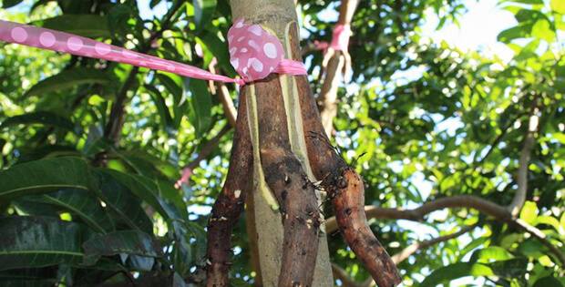 បំបៅឲ្យជាប់ ហើយជៀរសំបកជុំវិញ ដែលស្ថិតនៅខាងក្រោមកន្លែងបំបៅនោះចេញ។
