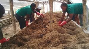 -បន្ទាប់ពីចំហុយសម្លាប់មេរោគរួចរាល់ហើយ ត្រូវយកអាចម៍រណានោះ ទៅចាក់ក្រាល ក្នុងថ្នាលបណ្តុះចេក ដោយគ្របថង់ផ្លាស្ទិក រុំកៅស៊ូបិតអោយជិត កុំអោយខ្យល់ចូល។