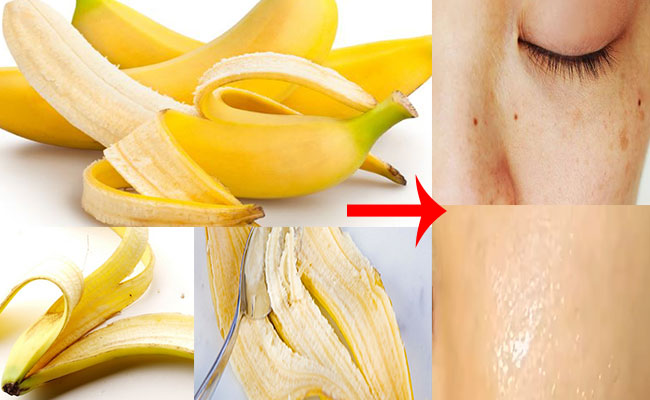 – ជូតសំបកចេកនៅលើស្នាមជាំពី ៥ទៅ១០ នាទី/gently rub the white fiber of banana peel on the blemishes for 5-10 minutes
