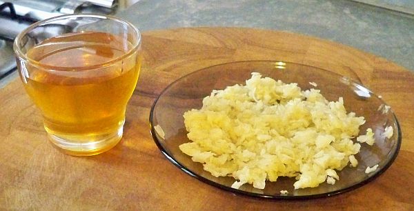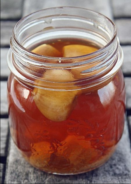 -យកខ្ទឹមស ៤ ប្រាំកំពិស លាងឲ្យស្អាត រួចដំតិចៗឲ្យបែក ដាក់ក្នុងចានលាយនឹងទឹកឃ្មុំប្រហែល ៣-៤ ស្លាបព្រាបាយ រួចយកទៅចំហុយ