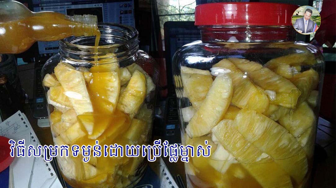 -បន្ទាប់យកម្នាស់ទៅដាក់ក្នុងក្រឡធំមួយ រួចចាក់ទឹកឃ្មុំទាំអស់ចូល