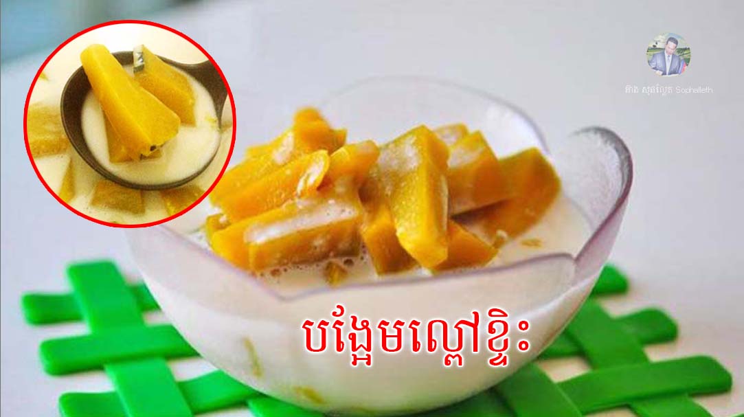 គ្រឿងផ្សំ៖ ល្ពៅ ៥០០ក្រាម, ខ្ទិះដូងដើម ២៥០មីលីលីត្រ និង ខ្ទិះចុង ៥០០មីលីលីត្រ, ស្ករស ៨០ក្រាម, ស្ករត្នោត ១០០ក្រាម, អំបិល ១ចុងស្លាបព្រាកាហ្វេ, ស្លឹកតើយ ៣-៤សន្លឹក (ដាក់ក៏បានមិនដាក់ក៏បាន)។ វិធីធ្វើ៖ យកល្ពៅកាត់ជាដុំៗ រួចយកទៅលាងទឹកឲ្យស្អាត។ ដាក់ខ្ទិះចុងចូល រួចដាក់ស្ករត្នោត ស្ករស និងអំបិលចូល កូរចូលគ្នាឲ្យសព្វ ទុកឲ្យពុះ។