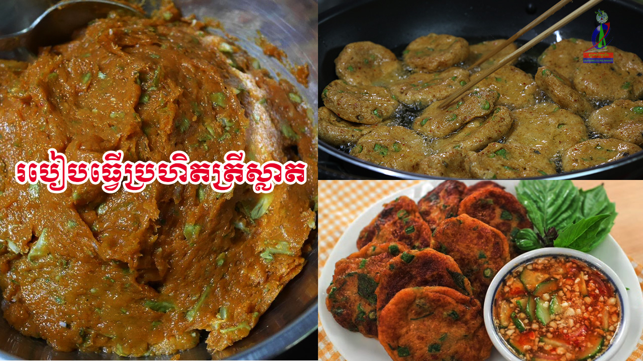 ២- ពេលដែលបុកសាច់ត្រីស្អិតល្អហើយ យកគ្រឿងបុក ពងមាន់ ស្កសរ ទឹកត្រី ដាក់ចូល រួចហើយច្របល់អោយចូលគ្នា ( រួចយកទៅចៀន ភ្លក់មើលសិន ) តើរសជាតិល្មមហើយឬនៅ ខ្វះខាតអ្វីយើងបន្ថែមបានទៀតតាមការចូលចិត្ត ។