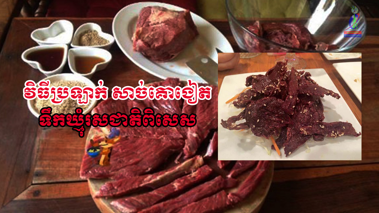 ៣-២ម៉ោងក្រោយមកយកសាច់គោដាក់ហាលឲ្យក្រៀម អ្នកអាចយកវាទៅអាំង ឬចៀនតាមការចូលចិត្ត៕