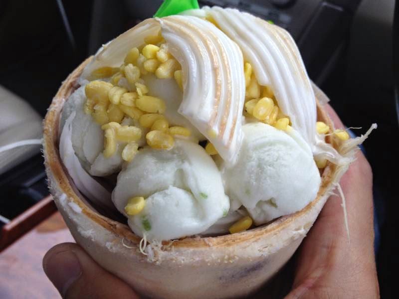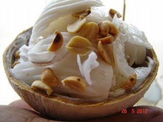 -ខ្ទិះដូងនៃផ្លែដូងមួយផ្លែ-អំបិល-ម្សៅពោត-ស្ករស-សណ្តែកដី-សាច់ដូងខ្ចី