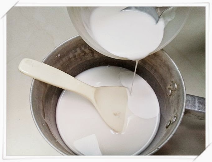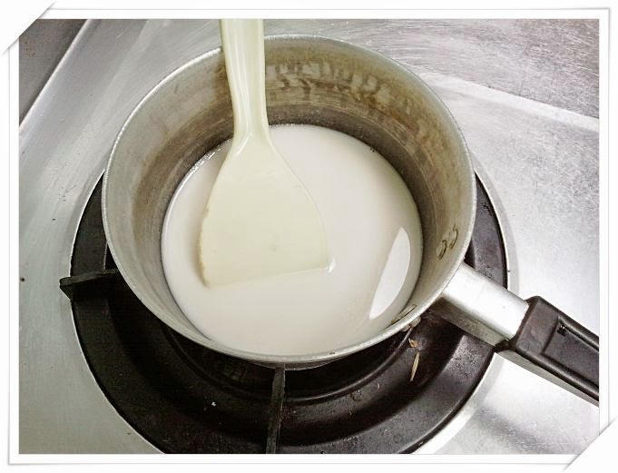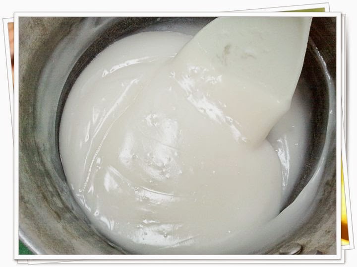 – ដាក់ខ្ទិះដូងចូលខ្ទះហើយបើកភ្លើងដាំវាឲ្យពុះ