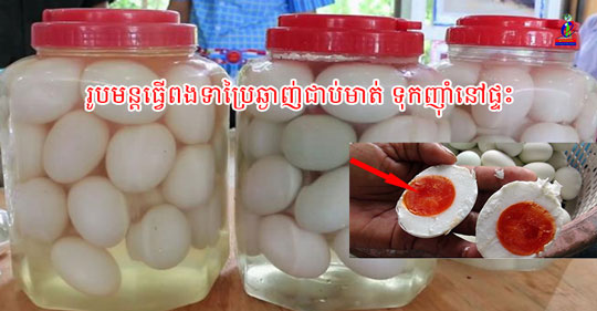 +ត្រូវត្រៀម៖-ពងទាឆៅ១០គ្រាប់-អំបិល១កញ្ចប់ (ប្រមាណ ២ខាំកន្លះ)-ទឹកមួយលីត្រ-ក្រឡកែវឬជ័រសម្រាប់ដាក់ត្រាំ។