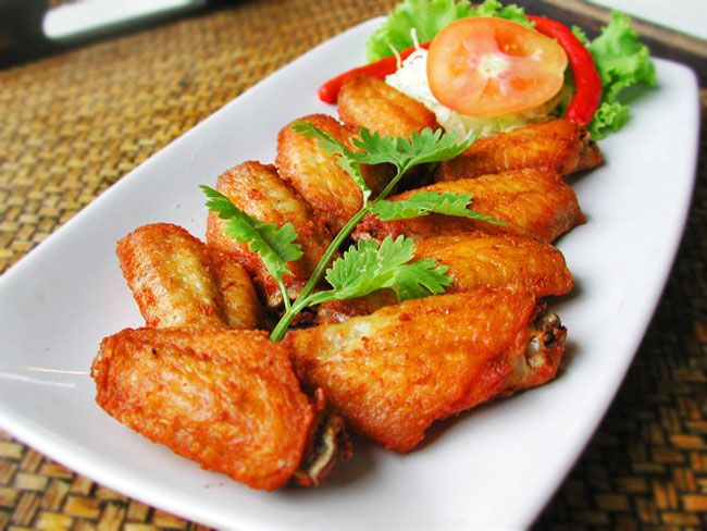 -ដាំប្រេងឆាអោយក្តៅ ដាក់គល់ស្លឹកគ្រៃ និងស្លឹកក្រូចបំពងអោយស្រួយ រួចស្រង់ចេញ។ដាក់ស្លាបមាន់បំពងអោយក្រហម និងឆ្អឹនល្អ រួចយកមករៀបដាក់ចានជាមួយស្លឹកក្រូច និងគល់ស្លឹកគ្រៃជាការស្រេច៕