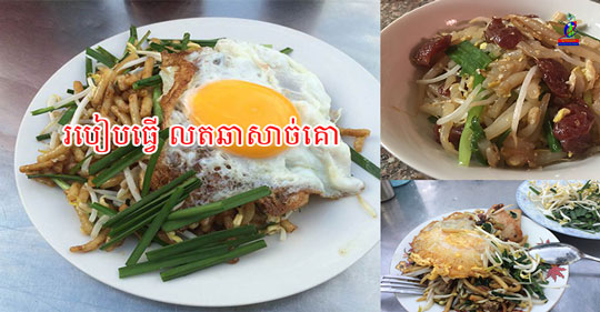 បន្ទាប់មកដាក់លតចូលឆាវាជាមួយសាច់គោបន្តិចសិន រួចហើយចាំដាក់ ខាត់ណា, ផ្កាគូឆាយ និងសណ្តែកបណ្តុះ ឆាឱ្យបន្លែឆ្អិនតាមការចូលចិត្តរួចដួសដាក់ក្នុងចាន។បន្ទាប់មកទៀតយកស៊ុតមកដាក់ចៀនឱ្យឆ្អិន រួចហើយដួសដាក់ពីលើចានលតឆាជាការស្រេច៕
