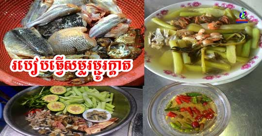 +គ្រឿងផ្សំ៖-ត្រី ២០០ក្រាម(ត្រីកញ្ចុះ) ធ្វើហើយលាងឲ្យស្អាត-ក្តាម៥ បកស្នូកហើយបេះស្រកីវាចេញ-កំពឹស 1/2ខាំ កាត់ព្រុយចេញ-ក្តាត ៣ខាំ សកសំបកហើយហាន់បញ្ឆិតប្រវែងថ្នាំដៃ-ក្រសាំង ២ ឬ៣ផ្លែ ពុះហើយចូកយកសាច់-ស្លឹកអំពិលមួយដៃ(បើចង់ដាក់)-រំដេង១កូនដុំប៉ុនមេដៃ-ម្ទេស 2ផ្លែ-ស្លឹកម្រះព្រៅមួយដៃ