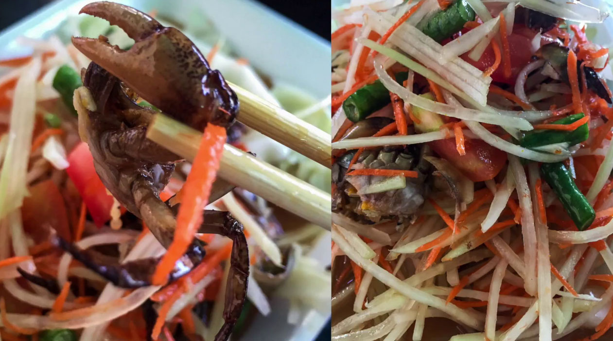 ល្ហុងឈូសចូល រួចបុកឱ្យសព្វ សឹមដាក់ក្តាមប្រៃចូលបុកជាមួយគ្នាឱ្យបែកសាច់ក្តាមប្រៃ បន្ទាប់មកកាត់ប៉េងប៉ោះ និងត្រប់ដាក់ចូលក្នុងត្បាល់ រួចកូរឱ្យចូលជាតិគ្នាល្អ។ ជាចុងក្រោយចូររៀបការ៉ុត និងត្រសក់ដាក់ក្នុងចាន និងដួសបុកល្ហុងដាក់ពីលើ ហើយរោយសណ្តែកដីលីង បង្គាក្រៀម និងហាន់ម្ទេសស្រស់ដាក់ពីលើបុកល្ហុងជាការស្រេច៕