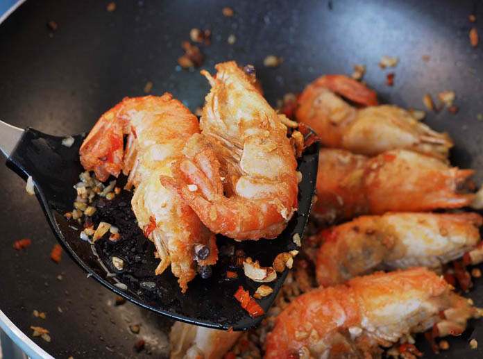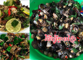 ៣.បន្ទាប់មកដាក់បង្កងដែលបំពងហើយចូលឆាច្របល់ចូលគ្នាអោយសព្វ រួចដាក់ស្លឹកខ្ទឹមហាន់ចូលឆាច្របល់ចូលគ្នាទៀត ហើយដួសដាក់ចានជាការស្រេច៕ ចុចមើលវីដេអូពីវិធីធ្វើនៅខាងក្រោម៖