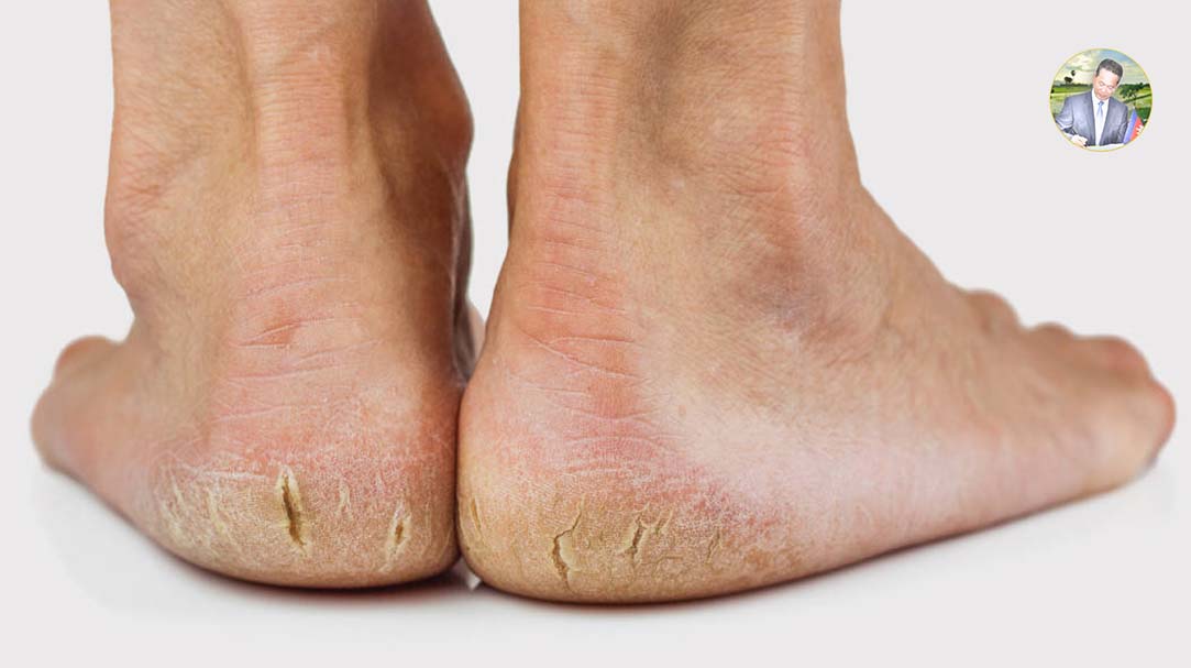 -យកក្រូចឆ្មារមួយចំហៀង ឆ្កឹះយកគ្រាប់និងច្របាច់ទឹកចេញ ហើយយកសម្បកក្រូចឆ្មារនោះ មកបំពោកលើកែងជើង រួចពាក់ស្រោមជើង រក្សាទុក៣០នាទី ចាំយកវាចេញ